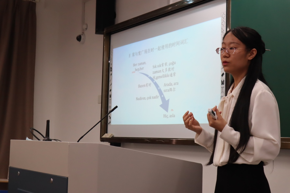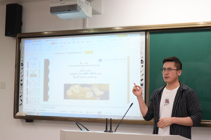 院长吴玲、副院长曹笑笑,校区域国别研究中心主任周烈、校特聘教授沈志兴等担任比赛评委。共有来自日语系、阿语系、朝语系和土语系的9位青年教师参与角逐。