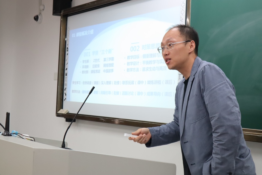 各青年教师按照抽签顺序依次进行课程展示。比赛中,他们相互切磋、相互学习,以赛促学、以赛促练,努力提升自己的专业教学能力,较好地展现了青年教师的风采。评委对参赛教师的教学设计(满分30分)和现场教学(满分70分)进行打分。在教学设计环节,参赛教师以5个学时为单位,阐述教学活动的设想与安排。现场教学环节的规定时间为15分钟,参赛教师须按照教学设计内容模拟课堂教学。
