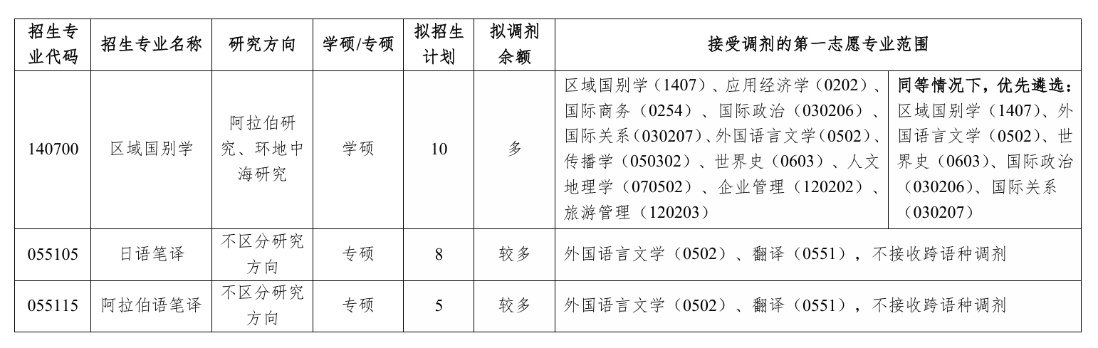 区域国别学(阿拉伯研究、环地中海研究)专业、日语笔译专业、阿拉伯语笔译专业有部分调剂名额。欢迎有意向调剂555电影