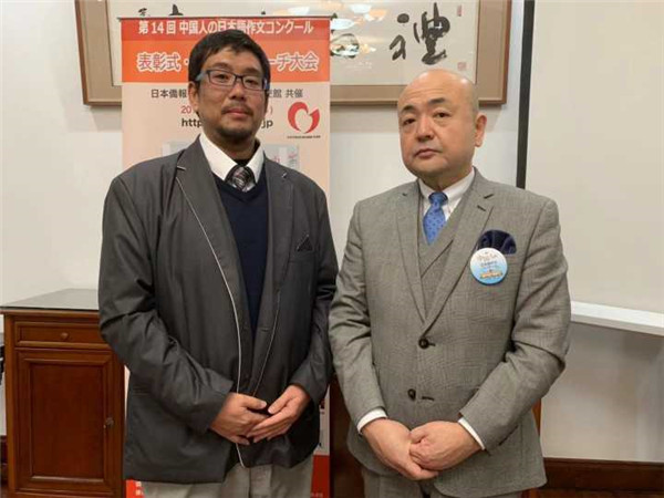 福田老师于12月26日参加了由日本驻沪总领事馆举行的讲座和交流会,此次大赛的主办方——日本侨报社的段跃中总编辑为福田老师颁发了奖状及奖品。随后,福田老师参加了在总领事馆公邸举办的恳谈会,并与日本的片山总领事、段跃中总编辑以及来自各个大学的老师、同学们进行了深入的交流。