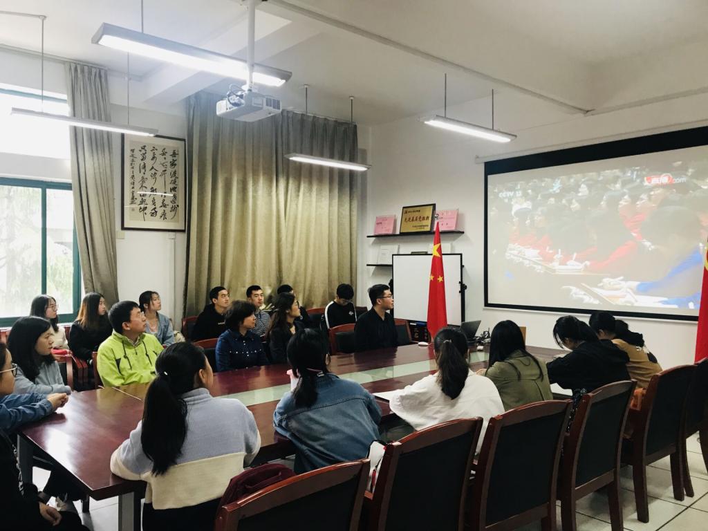 上午10时30分,学院党总支书记王永青、副院长金海救、曹笑笑等班子成员和学院青年团干部、辅导员、部门团员青年共同汇聚在望院C-2017学院会议室观看大会直播盛况。同时学院将大会直播网络视频链接发至教工、团学干部、班委信息群,便于暂时无法收看直播的青年教师、团员青年和本学期在韩国交换学习的同学利用网络也能在第一时间收看。