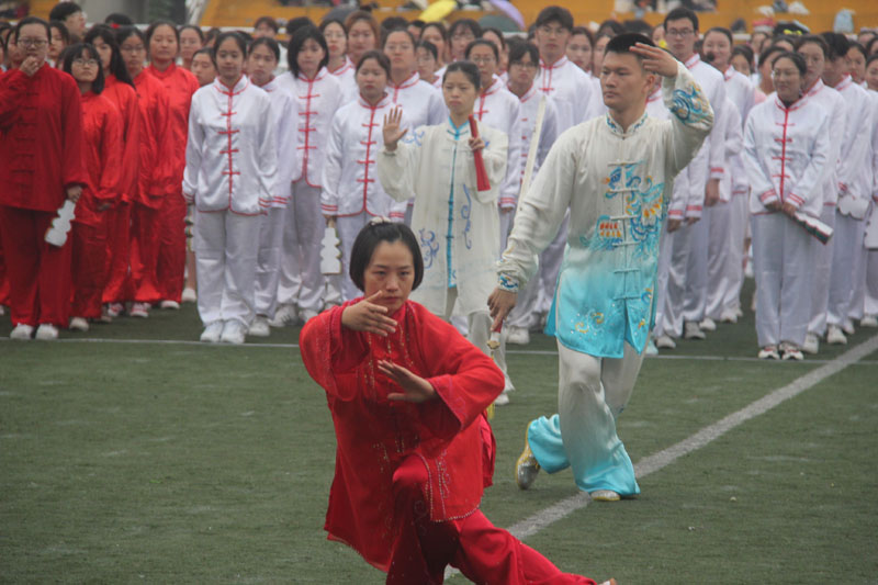 随后,各学院一起进行了太极拳与健美操表演。行云流畅的太极拳动作蕴含了东方美学的刚柔并济,灵动活泼的健美操舞步洋溢着青春年少的激情四射。