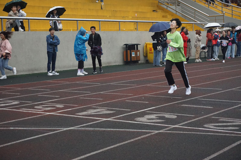 参赛选手——日语一班李曦婷同学却早已蓄势待发。奔跑的不仅是汗水,更是胜利与荣誉。