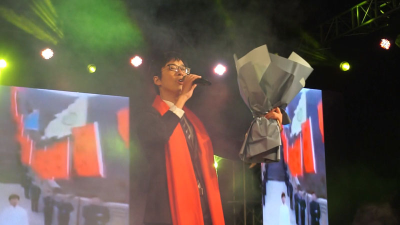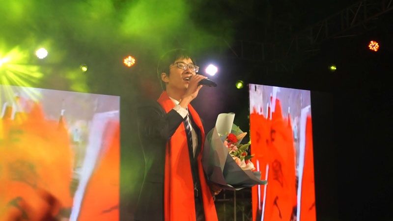 年代秀中,“明天的你是否会想起,昨天你写的日记”——熟悉的旋律伴随着日语系马一川老师甜美的歌声缓缓流出,带领现场观众一起回忆“同桌的你”。歌声易逝,但情意长存。