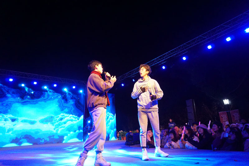 在动次打次的DJ律动热场后,期待已久的跨年演出渐渐拉开帷幕。健美操,说唱,乐器表演,舞蹈,走秀,武术等等各种各样的舞台表演形式应有尽有。表演者们用真挚和专业的舞台为观众们带来了一场奇妙的视听盛宴。