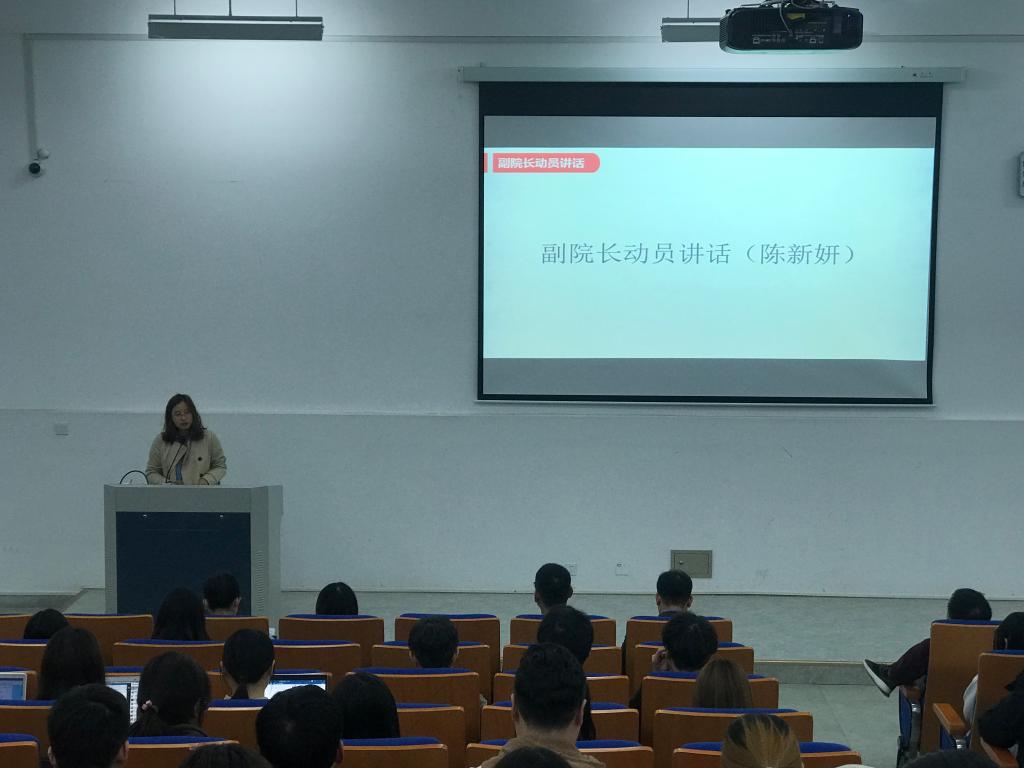 在融D108召开了2021届毕业生就业实习动员大会。学院副院长陈新妍、党总支副书记方盼、学工办辅导员杜茜、办公室教务秘书何琰老师、各系主任及毕业班班主任出席本次大会。