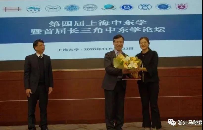 随后,环地中海研究院副院长兼阿拉伯研究中心执行主任曹笑笑副教授代表浙外教师代表团队登台为马晓霖教授献上鲜花道喜。