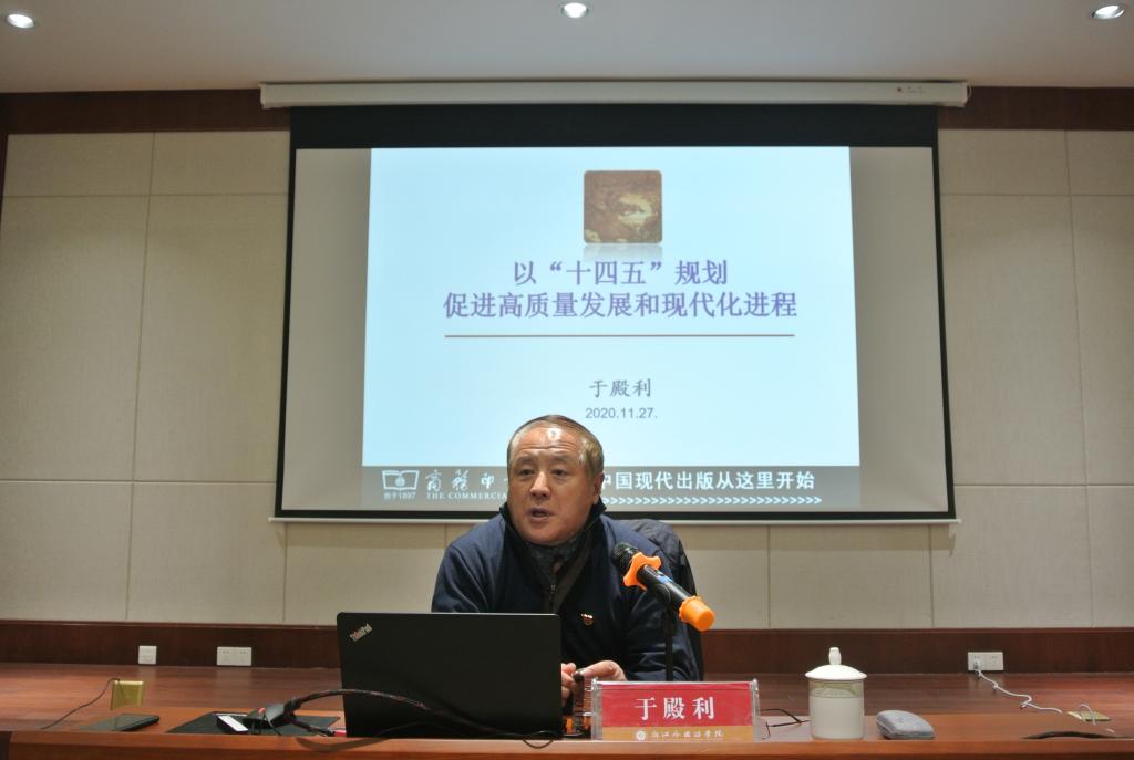 11月27日,应学院邀请,中国出版传媒股份有限公司副总经理、全国政协委员于殿利教授做客我校,为学院师生带来“‘十四五’规划促进高质量发展和现代化进程”专题党课。副校长李安、柴改英出席讲座,学院党总支书记王永青主持讲座。