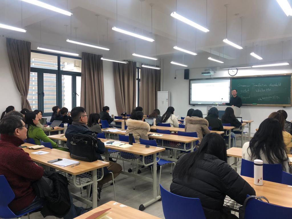 “在教学中验证方法理论,利用现有的教学条件寻找教学方法,预判未来的教学走势,改善自己的教学方法……”滕教授结合自己的经历简述了当今的教学法,并引入了“记忆时长”“输出自动化水平”“习得参数”“统计学”等概念,强调实证法研究及其重要性。整场讲座语言精辟、案例鲜活、见解独到、信息量大,对多学科的交叉研究大有启发。