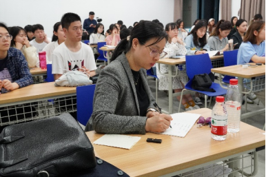 讲座过程中陈玉宝讲话内容幽默风趣,同学们欢声笑语不断。最后,他以“学好语言,走出世界”这句话作结,这不仅是本次讲座的总结,也是对同学们的殷切期盼。