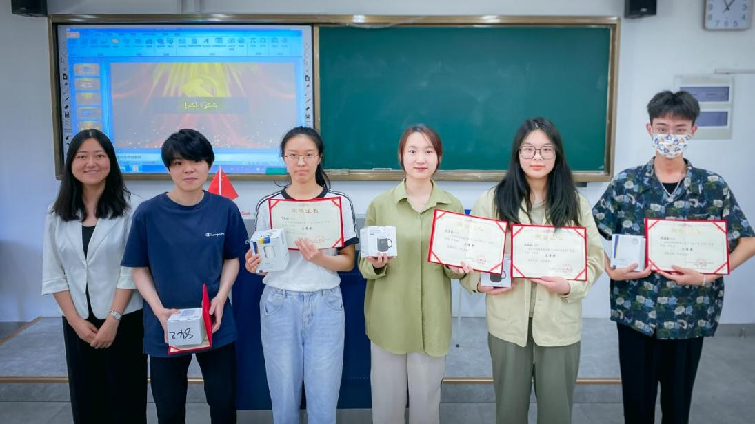 吴玲教授为三等奖获得者:徐培钦、徐晨、李晓越、蒋清怡、廖潇雅颁奖