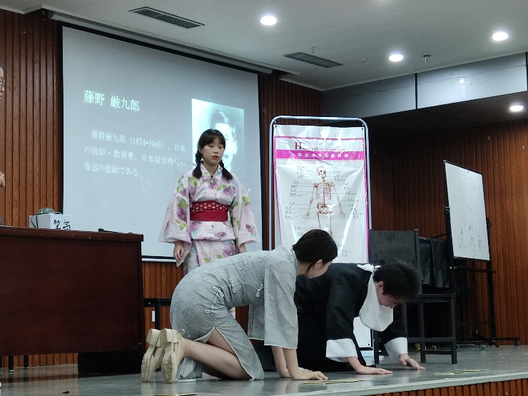 日语系主办的日剧play大赛在博文堂成功举办。来自2018级和2019级的12组同学参加了本次比赛。本次大赛参赛作品选题新颖,题材多样;表现风格或幽默风趣,或发人深省;同时涌现了许多演技超群的选手,他们洒脱忘我的真诚表演为大家带来了独特美好的感受。经过日语系各位评委老师的评选,「魯迅の抜歯物語」获得了特等奖,「ハムレット」、「ラーメン屋『小林さくら』」获得了一等奖,另有多支队伍获得了二等奖、三等奖和优胜奖。