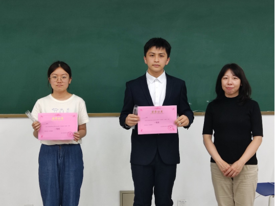 经过两个多小时激烈角逐与片刻等待,主持人揭晓了获奖名单。宣继豪同学获得了特等奖,蒋颜泽、邱丹蕊获得一等奖,贾宇慧、李依萍、吴城玲获得二等奖,吴梦婷、余晓婷、黄舒晨、傅星奕获得三等奖,另有潘宇飞等11位同学获得优胜奖。