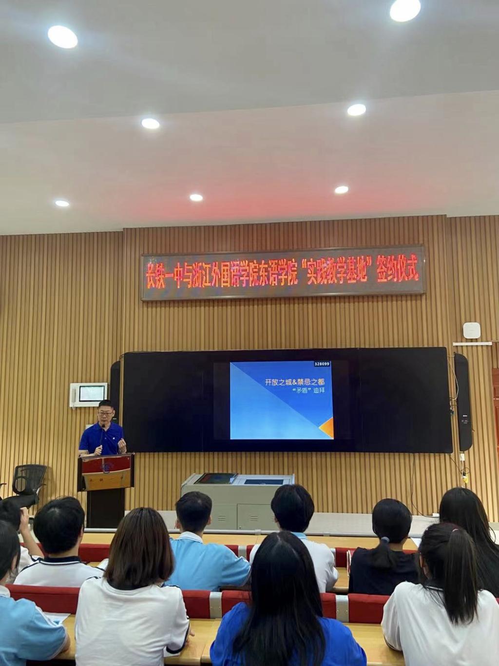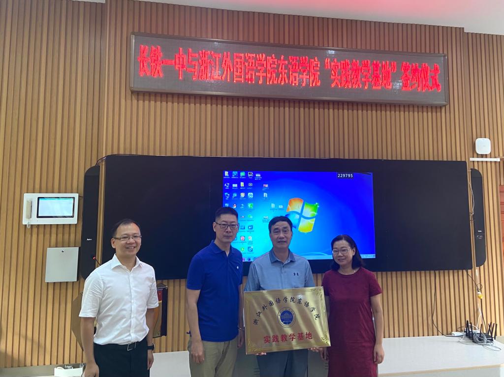 阿拉伯语系主任刘彬老师赴湖南长沙铁路第一中学出席合作共建实践教学基签约仪式并代表学院向该校授牌。长铁一中曾庆桂校长、学生发展中心卢喜琼主任、国际项目负责人周骁老师以及部分师生代表出席授牌仪式。
