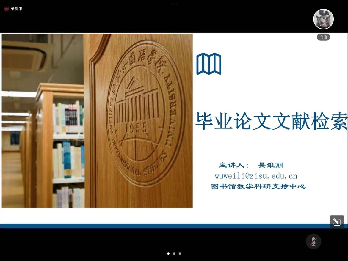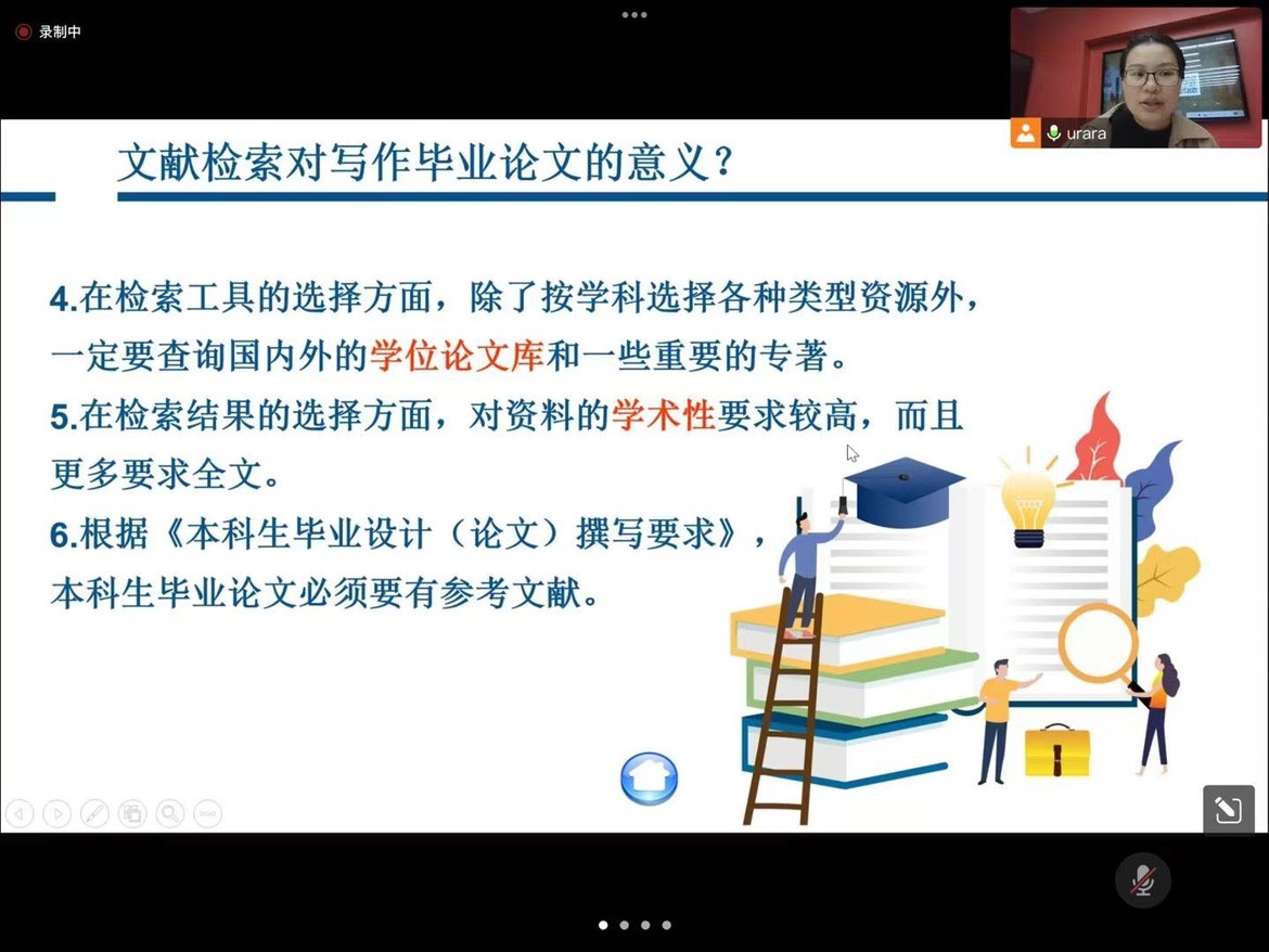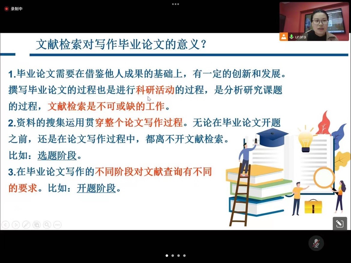 阿拉伯语系为阿拉伯语专业大三的同学们开办了一场关于学术论文写作与文献检索的线上讲座,主讲人是来自图书馆教学科研支持中心的吴维丽老师,讲座由阿拉伯语系郑蓉老师主持。吴维丽老师是学校图书馆学科馆员,主要负责承担读者培训,图书馆资源服务宣传推广,教师科研成果查收查引,为对应学科提供学科服务等工作。而本场讲座的目的是在同学们开始准备毕业论文写作之际,给予大家文献检索方面的指导。