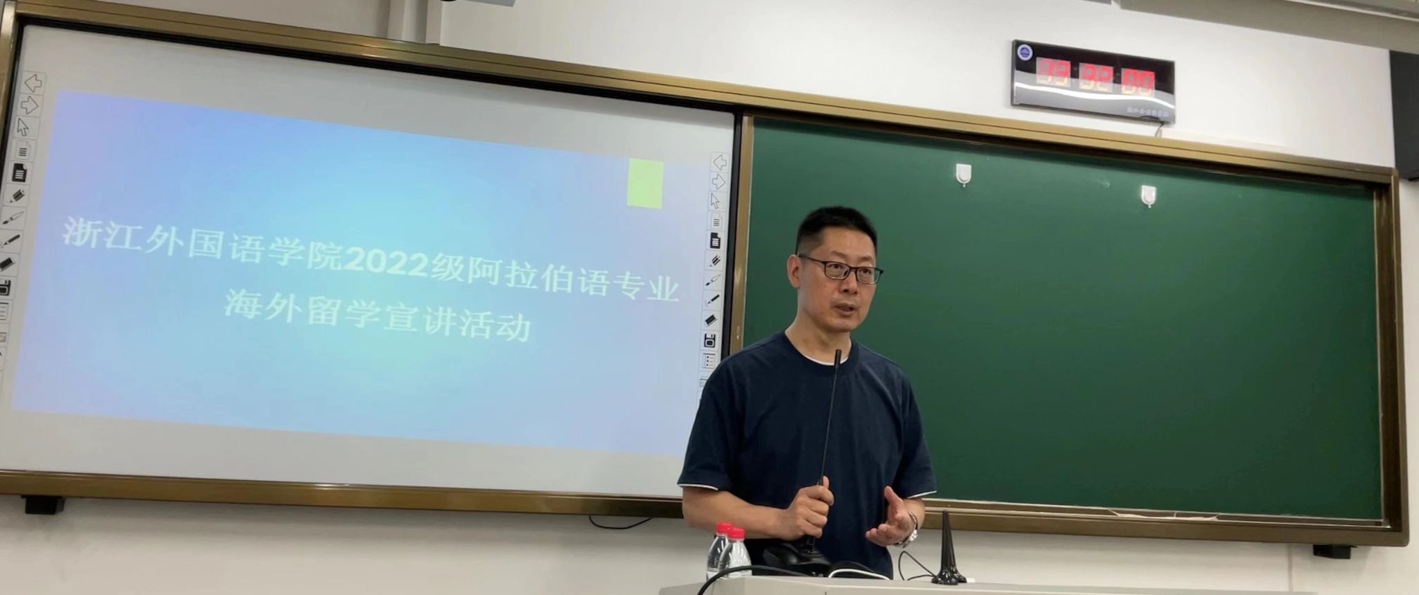 5月28日下午,学院阿拉伯语系在融A101成功举办留学项目宣讲会。本次宣讲会邀请了中教启程国际教育咨询有限公司的马海贵老师进行宣讲,宣讲会由阿拉伯语系刘彬老师主持,徐爽心老师出席了本次宣讲会,2022级阿语专业学生参加宣讲会。