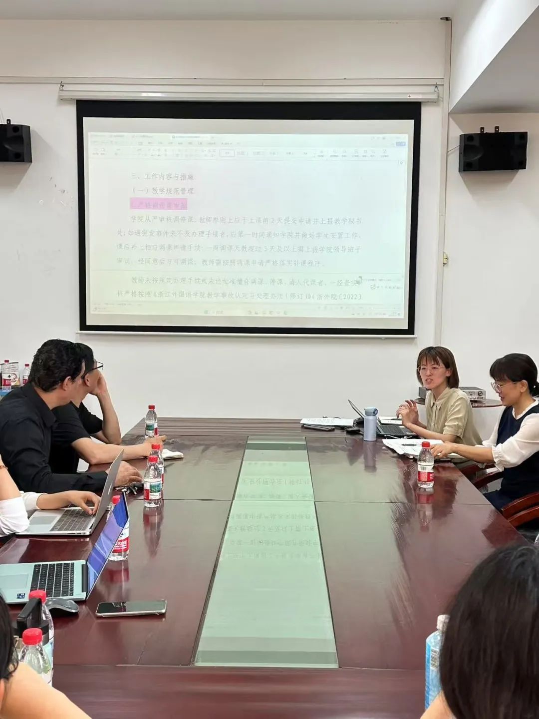 在交流环节,外籍教师积极发言,纷纷表示将严格遵守学校及学院规章制度,全力配合做好教学管理工作。同时,他们围绕教室资源调配、学生课堂管理等实际问题,同与会人员进行深入探讨。