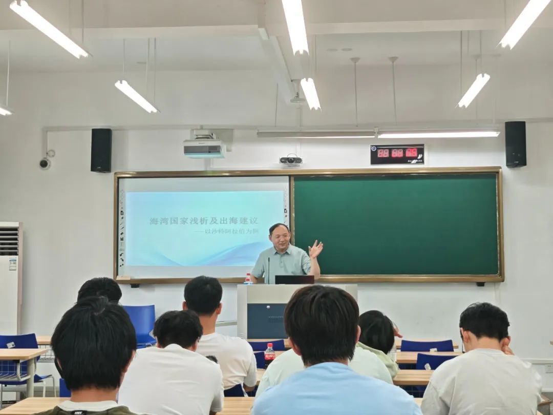 阿语系顺利举办以“海湾国家浅析及出海建议”为主题的专题讲座。本次讲座特邀深耕中东经贸领域多年的专家、义乌市山东商会会长马文兵先生担任主讲人,阿语系副主任徐爽心老师出席并主持讲座。马文兵先生围绕沙特阿拉伯市场展开讲解,深入剖析了阿语语言能力与商业拓展之间的紧密关联,为2024级学子投身中沙经贸合作提供了具有前瞻性的指导。