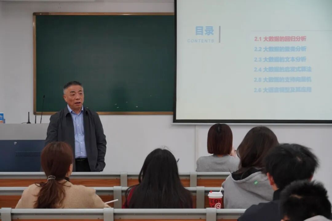 讲座中,陶长琪教授从大数据回归分析、聚类分析、文本分析、启发式算法、支持向量机及大语言模型及其应用五个维度,系统梳理了大数据分析的核心方法论与应用前沿。他通过生动的案例演示,深入浅出地阐释了各类算法的实现路径与应用场景,着重剖析了支持向量机在处理复杂分类问题上的独特优势。在谈及大语言模型时,陶教授不仅详细解读了其基本原理与发展脉络,更结合内容创作、代码开发、客户服务等具体领域,展示了人工智能技术的创新应用前景。
