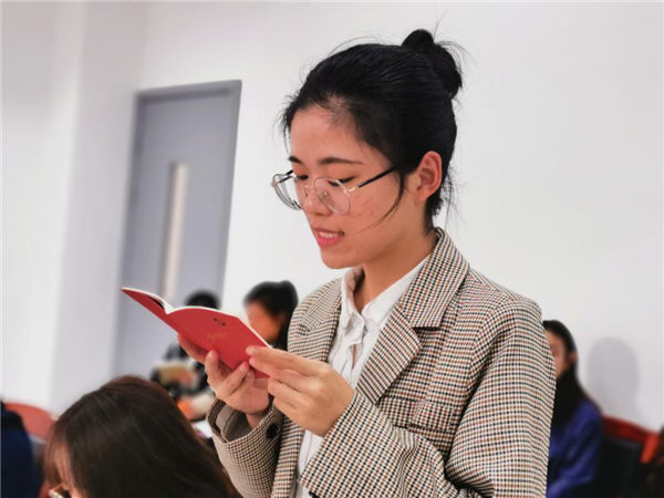 学生第一党支部书记丁彩瑶老师首先对学生党员关于应知应会、浙江三地建设、三严三实、两学一做等内容进行了抽查,并查看大家学习强国平台和学习记录本的学习情况,同时带领大家进一步了解应知应会、浙江三地建设、三严三实、“两学一做”以及《中国共产党章程》里的重要内容。作为浙江省党建样板支部,丁老师也在会上分享了学生第一党支部工作经验,介绍了样板支部的建设情况。