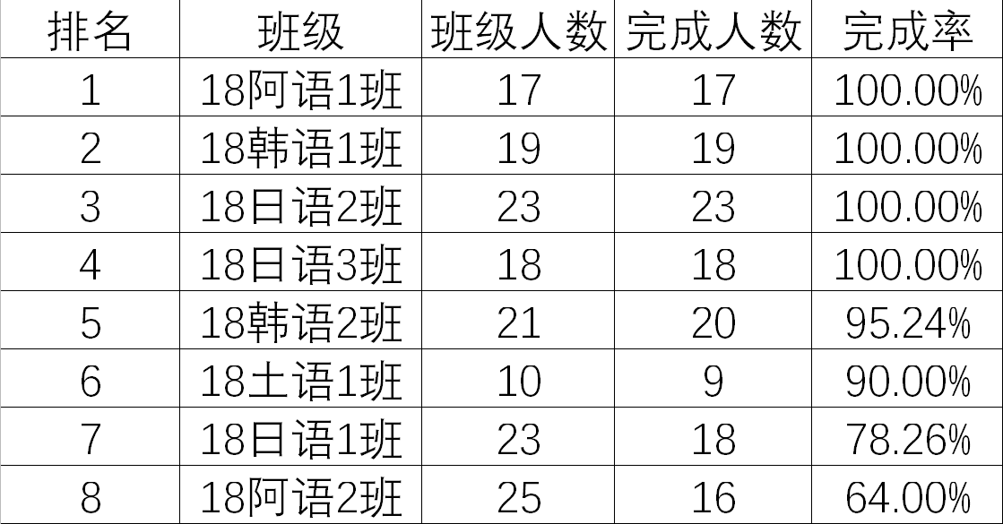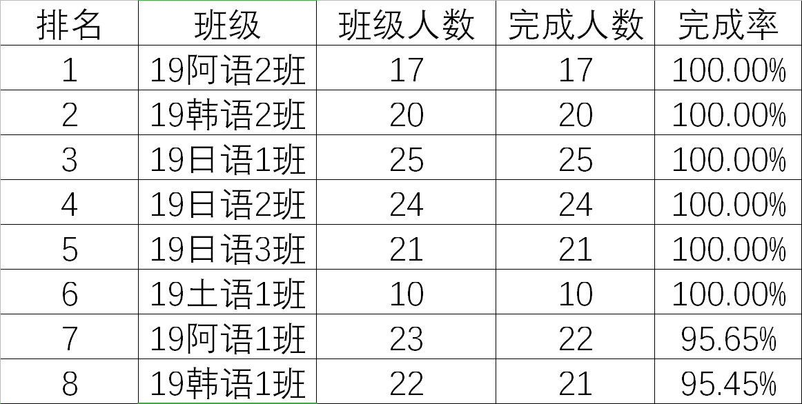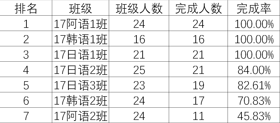 靠后的班级也不要灰心,加油努力提高完成率