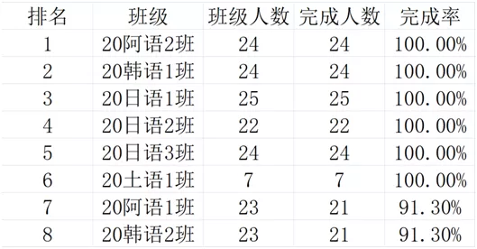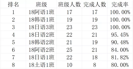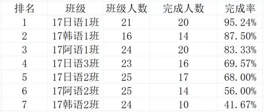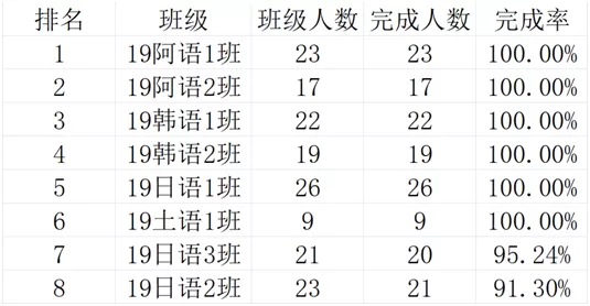 靠后的班级也不要灰心,加油努力提高完成率