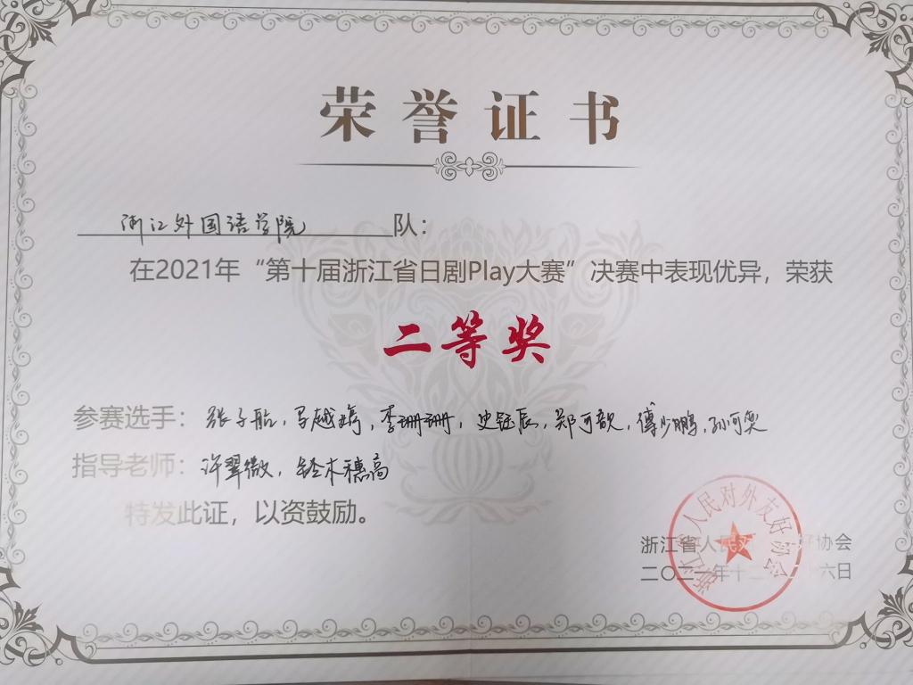 浙江省日剧PLAY大赛是省内各高校日语专业学生竞技日语应用能力的一个品牌赛事,为所有热爱日剧日漫的大学生提供了展示才能的平台,有利于促进各高校日语爱好者之间的交流,培养日语专业学生的学习兴趣,营造浓厚的日语学习氛围。