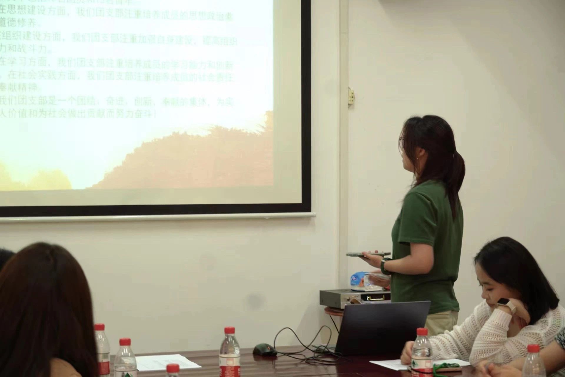在展示环节,各个团支部通过PPT、视频等方式介绍了各个支部的成员构成、团日活动开展等情况,并详细介绍了团支部在组织团员开展日常学习、文化宣传、志愿服务等方面的特色做法。