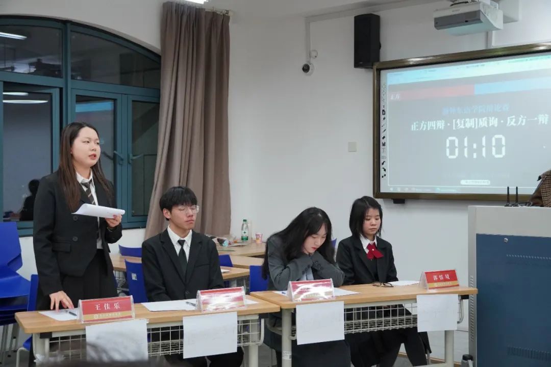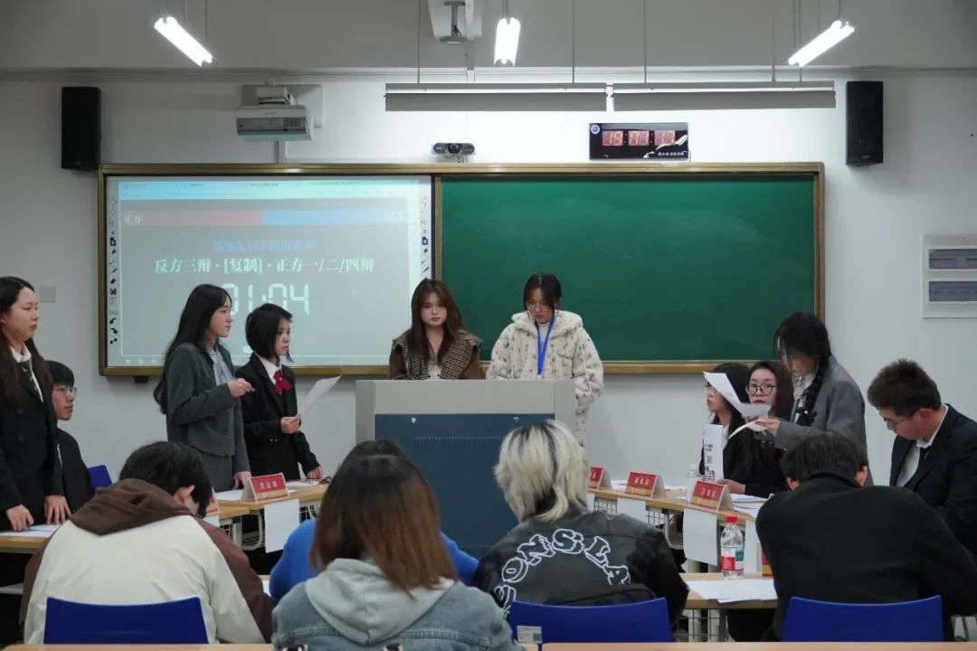 在融C102举办2025年新生辩论赛。本次辩论赛邀请到了校华语辩论队队长陈羿凯,校辩论赛冠军队伍成员俞代绅以及多次在各类辩论赛斩获佳绩的何梓菲、马铭蔚担任评委。