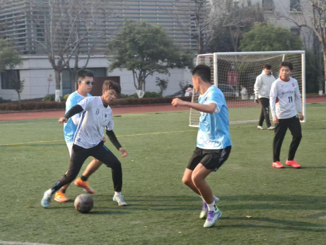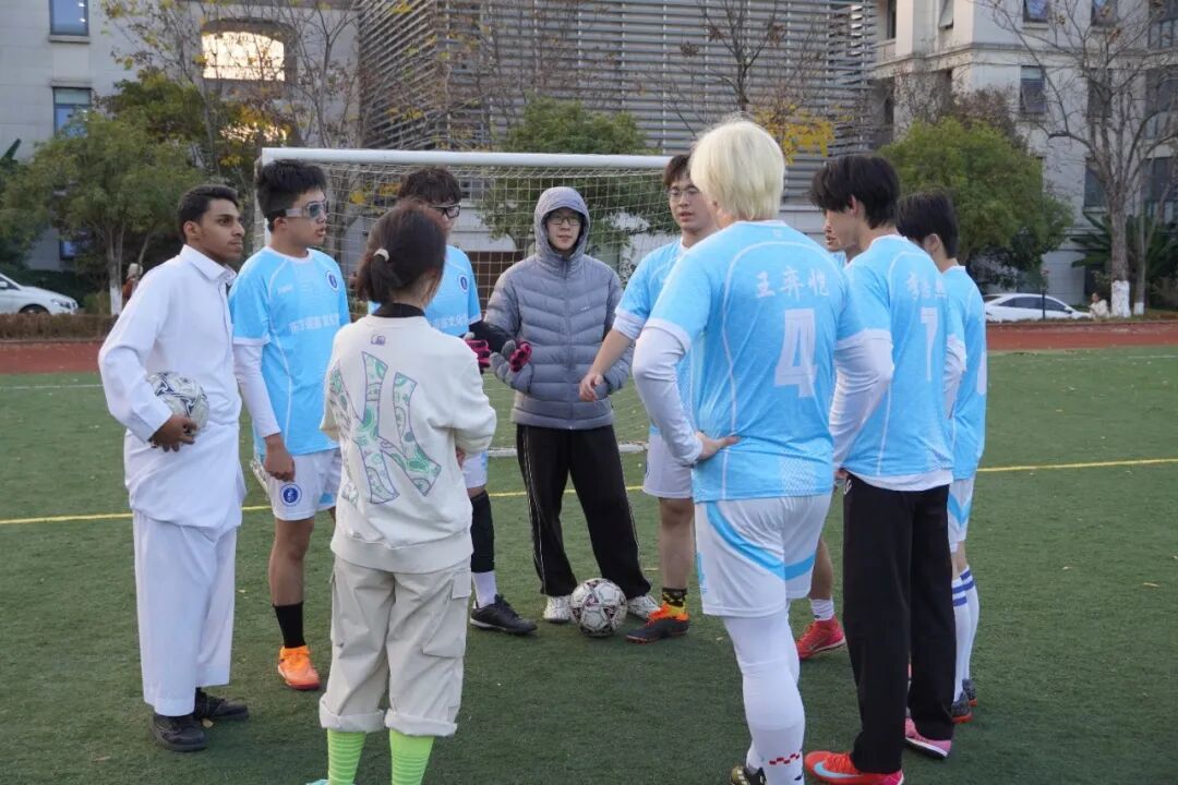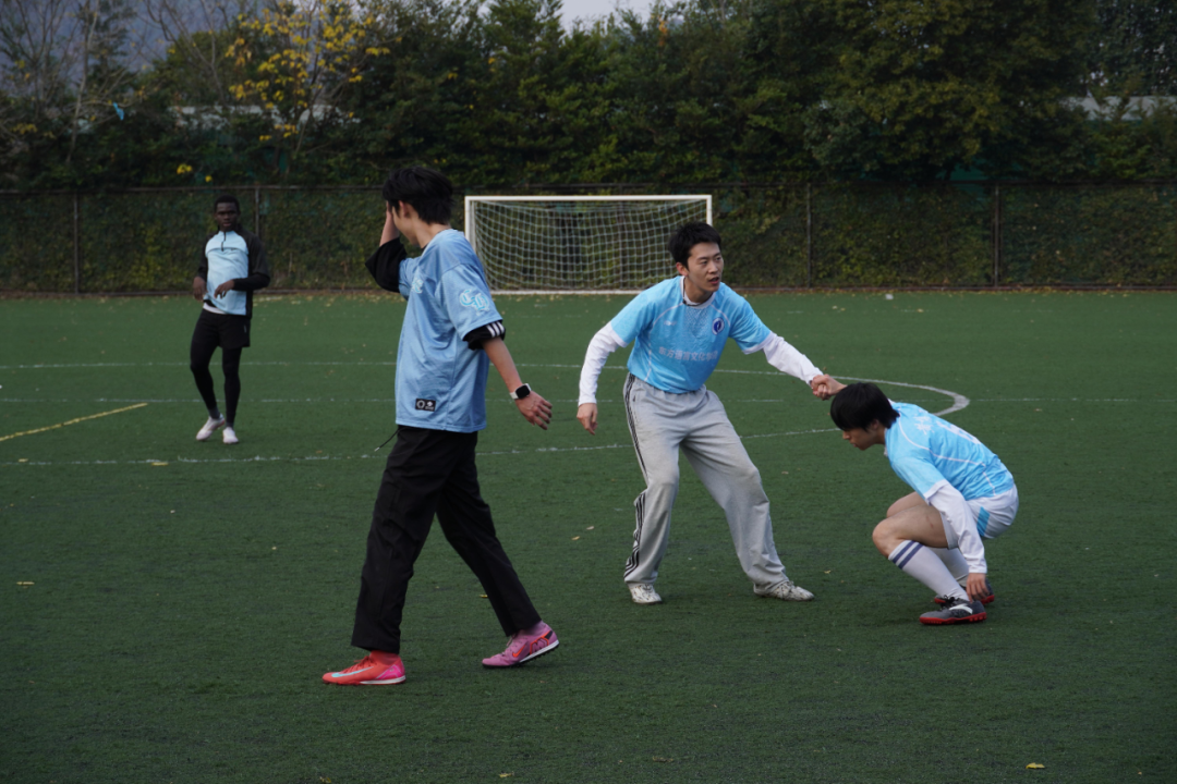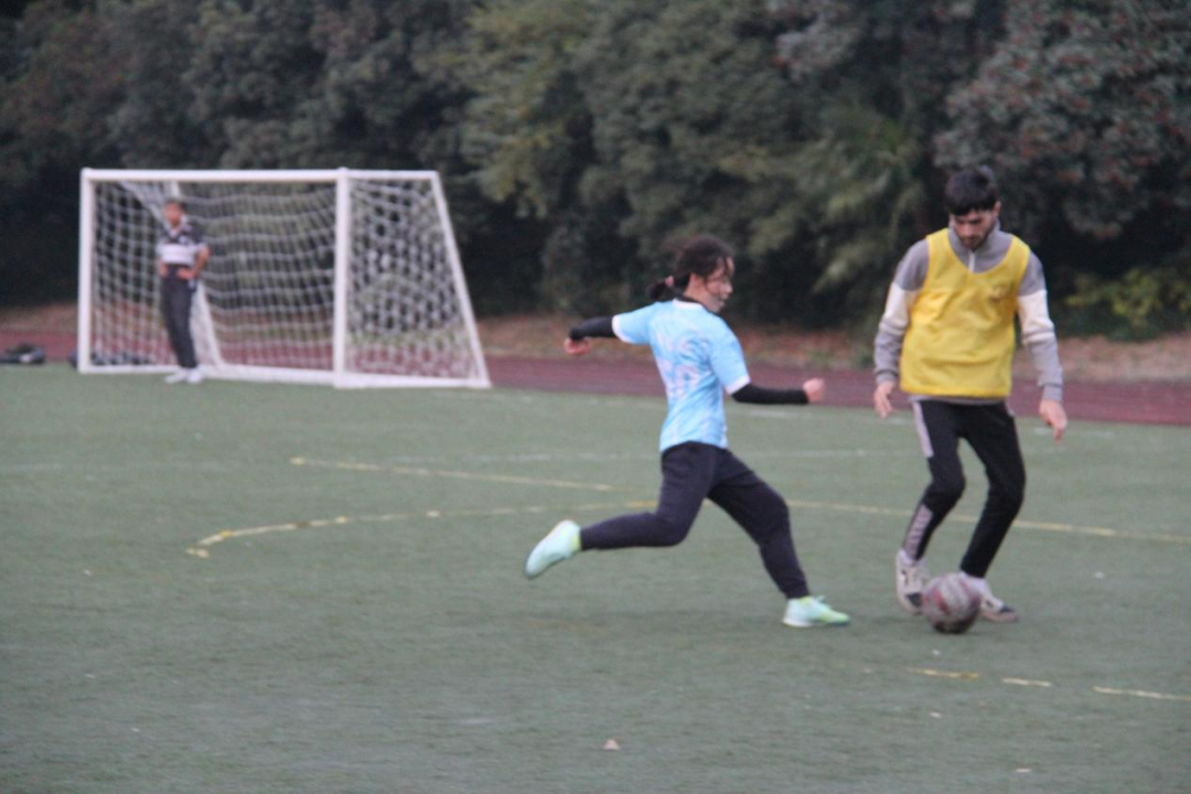 同日,第二场对阵国际学院足球队。带着上一场平局的韧劲,队员们上场前互相鼓劲,士气拉满。队友间配合默契,面对对手凌厉进攻毫不畏惧;门将林敬煊屡次高接低挡,化解险情;薛添熙突破防守,单挑门将得分。终场的哨声响起,我方虽未能取胜,却收获了友谊。