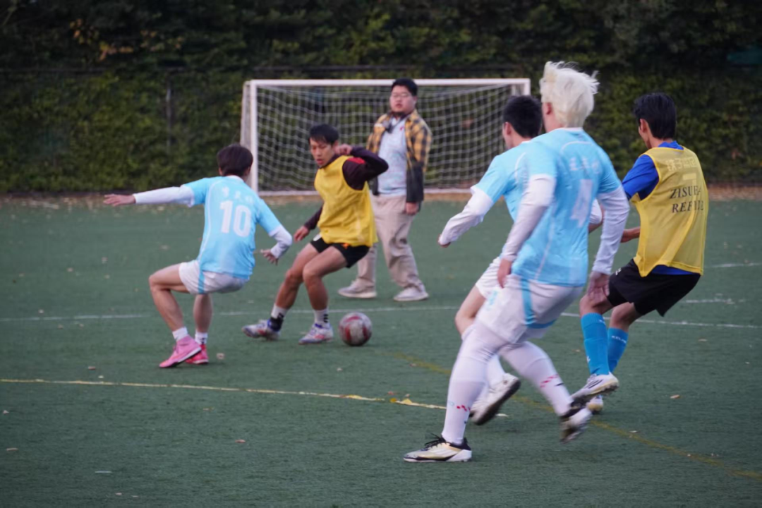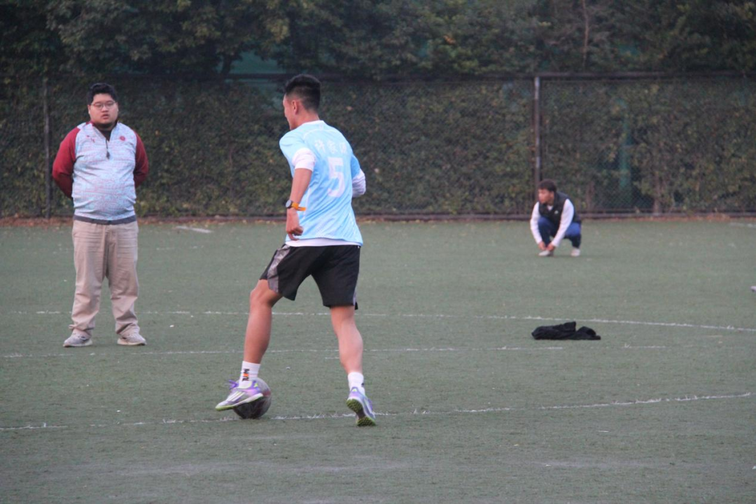 12月3日,首战英文学院足球队。开场后因配合稍欠默契连续失球,士气一度低落。关键时刻,队长王弈恺迅速召集队员复盘调整战术、更换阵容,队员们重拾斗志,舍身封堵、拼命回追,场下替补与观众的呐喊助威声此起彼伏。虽最终未能取胜,但不惧强敌、顽强拼搏的精神已然闪耀赛场。