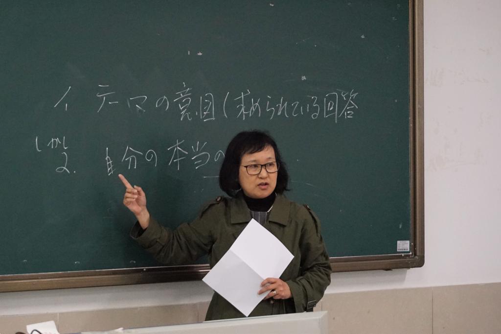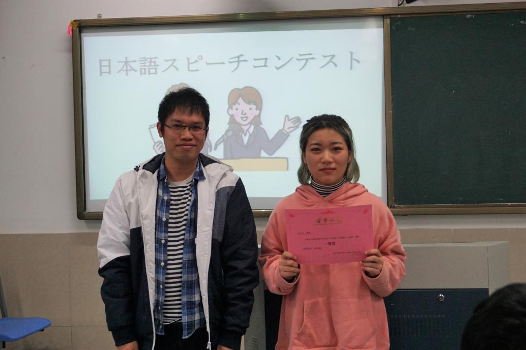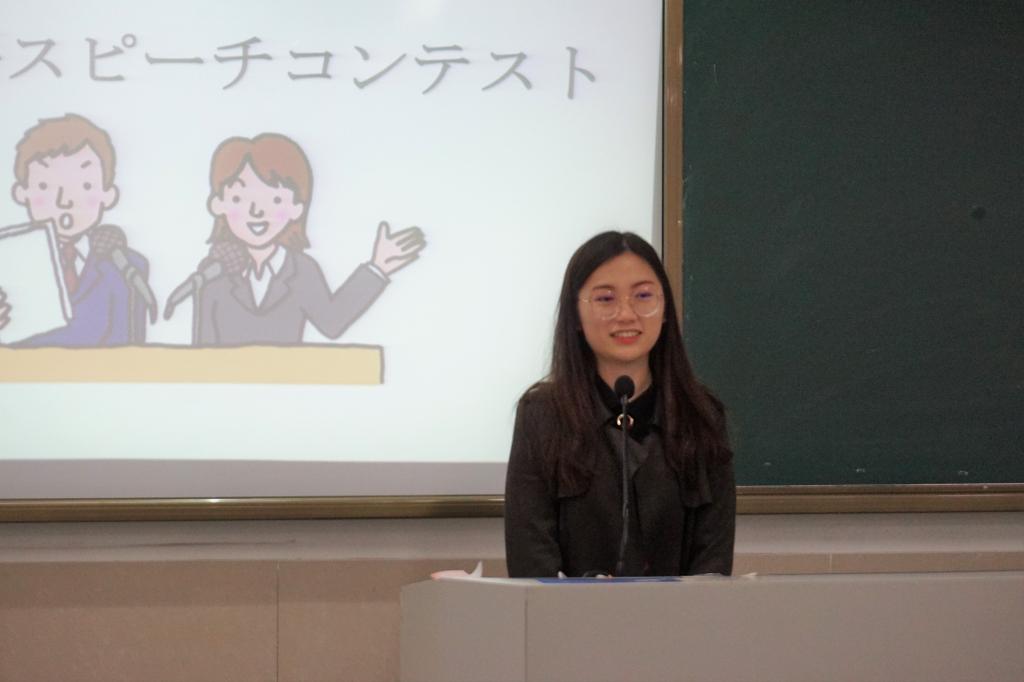 接着水野老师进行了点评,她认为这次演讲大家不分伯仲,但她也提出了一些意见,比如开始提出一个观点后具体说明,最后总结,都要围绕着一个主题,立意不能含糊不清。之后水野老师颁了三等奖给周思危、陈清泉、陈平。福田老师给吕梦洁、易志臻焱颁了二等奖。朱晓凡老师将一等奖颁给了尤芸宁。