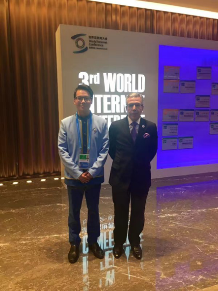 (互联网大会上何尊学长与阿尔及利亚驻华大使艾哈桑·布哈利法的合照)