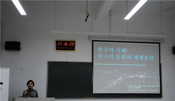 师生做了主题为“韩国文化和世界遗产”的精彩讲座。