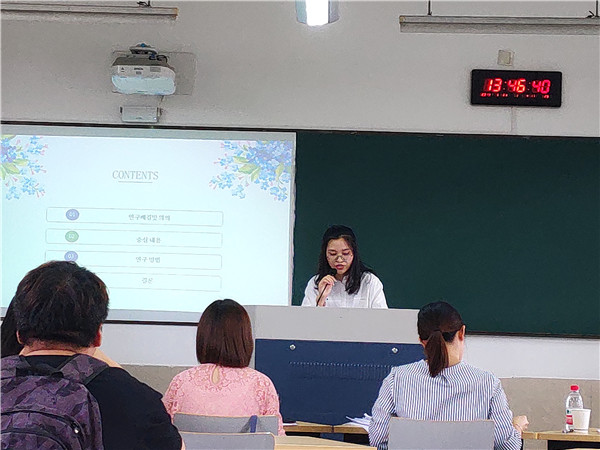 各位身着正装的毕业生,上台用自己精心准备的PPT向在场师生展现了自己的研究目标、研究过程以及研究成果。他们的研究方向从中韩对比到日韩对比,涉及政治、经济、文化等多个方面。他们清晰的论辩呈现出了一幅世界多元文化的斑斓图画。而各位老师在仔细阅览了同学们的论文之后,不仅向同学们提出关于论文排版、目录撰写、文献引述等细节性的指导,还就自己在论文中所发现的疑问之处与同学们进行了融洽的交流。此外,答辩秘书还在老师提问的过程中记录下这些修改意见,在结束后交给各位毕业生以供参考。