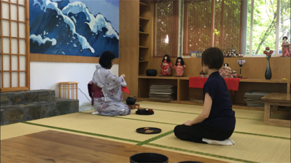 课上,先由学生助手向大家简单讲解一下茶道的基础知识,再由穿着精美和服的老师们为大家展示茶道表演。