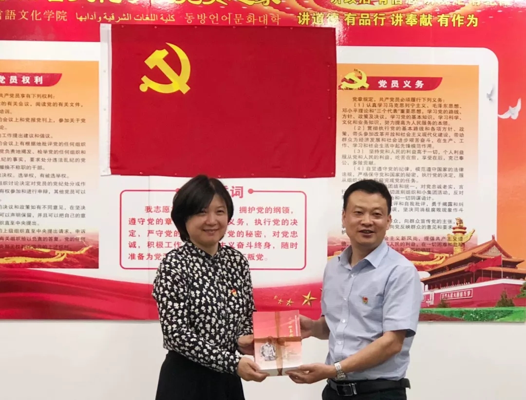 党总支向省残疾人体训中心党支部书记丁建华赠送了我校编印的《青年学子学青年习近平》学习教育教材,以学习接力的方式传递对青年习近平精神品质的学习,从而推送双方党组织不断学习、共同进步。