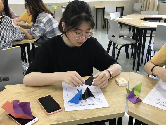 的文化周中,学院为17级的各位同学们安排并开展了丰富多彩的活动。其中日语系的老师与学生们,为大家带来了日本游艺——日本折纸。