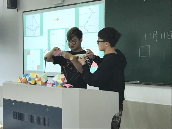 在折纸开始之前,日语系的同学为大家介绍了日本折纸的历史,折法等折纸文化,并且欣赏了日本不同的折纸工艺品。