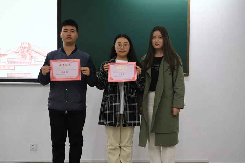 获得二等奖的是:土语一班张润怡、阿语二班邓曦晨