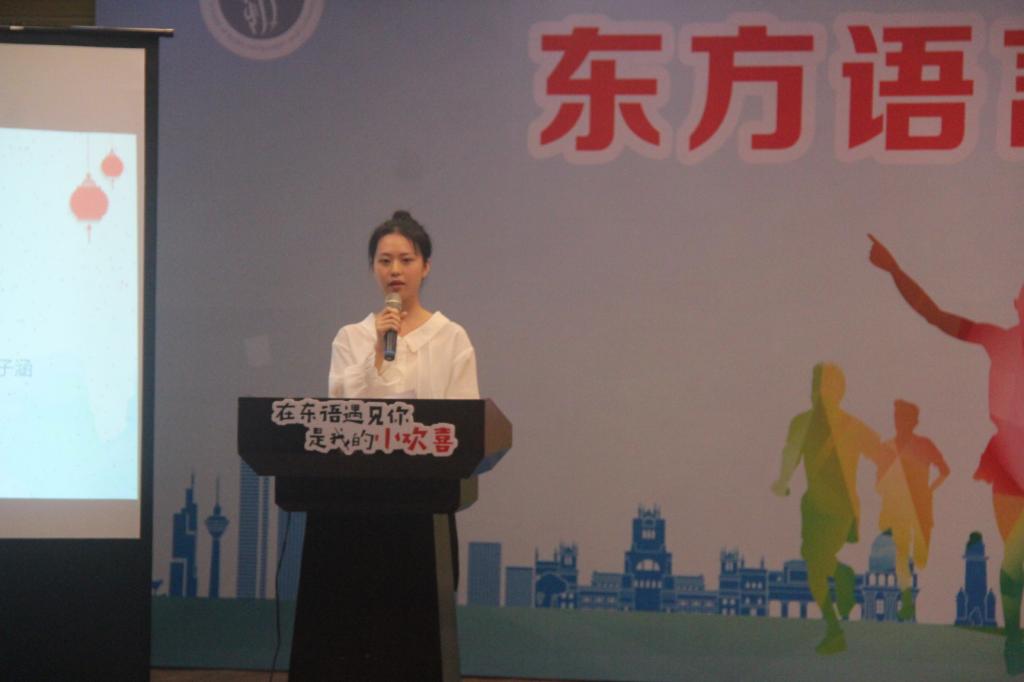 首先,全员师生齐唱国歌。唱毕,日语系新生周子涵同学作为新生代表上台发言,表达了对大学四年学习生活充满的期待。