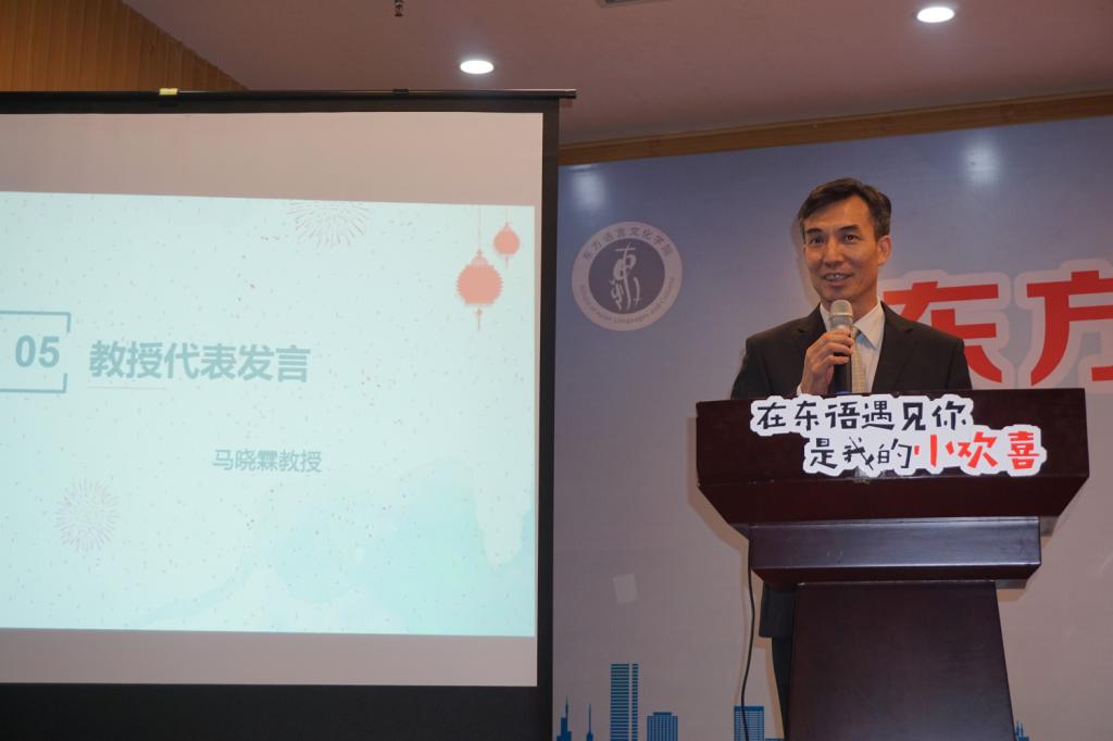 接下来,由我校西溪学者,也是阿拉伯语系教授马晓霖老师发表演讲。他深刻诠释了对语言的理解,希望同学们对自身语种充满自信,以勤奋刻苦的精神热爱语言,并将其应用于实践,并对新同学们给予了殷切希望。