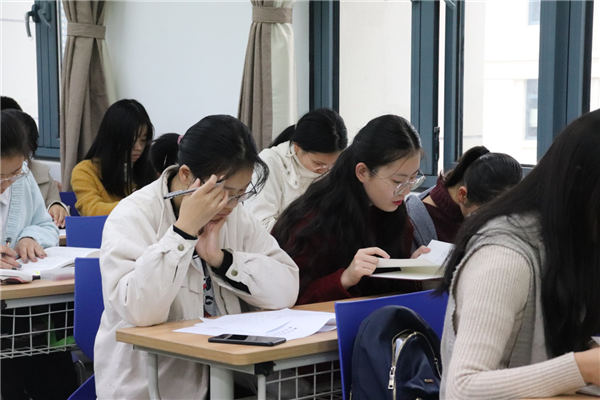 比赛于9:30准时开始,同学们专心致志地翻阅《阿拉伯语汉语词典》,争分夺秒查找试卷上的单词。比赛现场十分安静,只能听见同学们“刷刷”的翻页声。