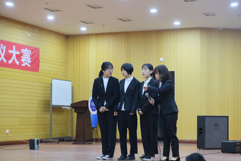 在第二环节“通达寰球”模拟新闻发言中,陈文心同学以谦逊优雅的发言,冷静如流的答问,获得了在场评委的高度认可。沈莉鹏同学向大家大致陈述了斯里兰卡债务问题,结合讨论,深刻剖析,代表中方阐述了其观点。而游珍婷和孙曌珺同学则扮演了记者的角色,向对方代表提出了富有针对性的精彩问题。