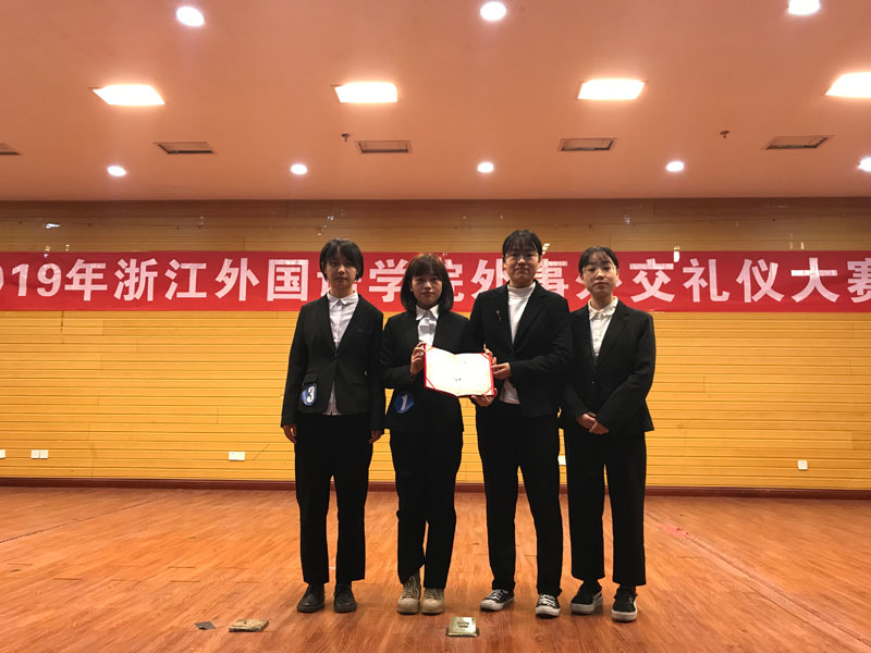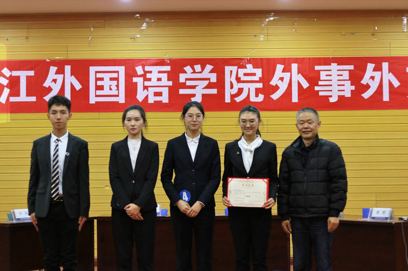大赛尾声,东语代表队和外交外事精英人才联合会代表队八位同学借其丰富的外交知识与出色的临场反应,在校外交外事礼仪大赛中表现优异,赢得了满堂喝彩。