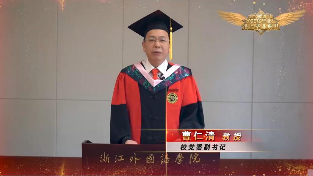 校党委书记宣勇致辞—“毕业是一个求学阶段的结束,也是人生新征程的开始,在以后的时光里,都有一个灿烂的前程,都能收获幸福!” “浙外永远是毕业生们坚强的后盾,永远在浙里等你!”
