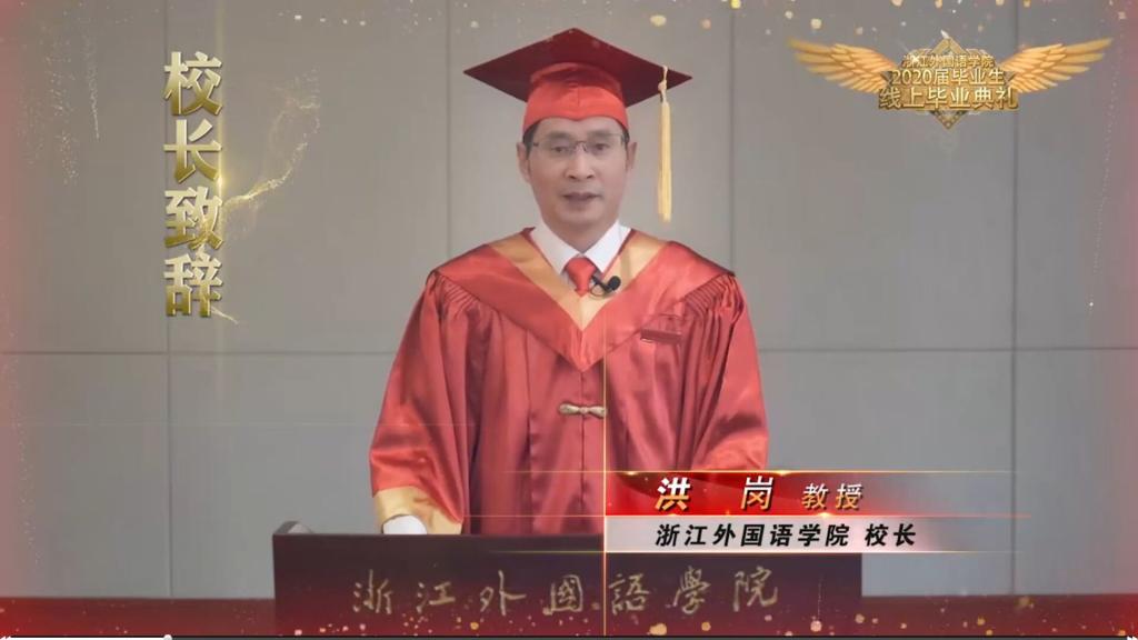 校长洪岗致辞—“在危机中遇新机,于变局中开新局” “面对人生的选择,你们将更加谨慎,融入更多思考,在这场困境中开拓出自己的新天地” “希望大家做一朵有信仰、有情怀、有张力、有内涵的浪花”!
