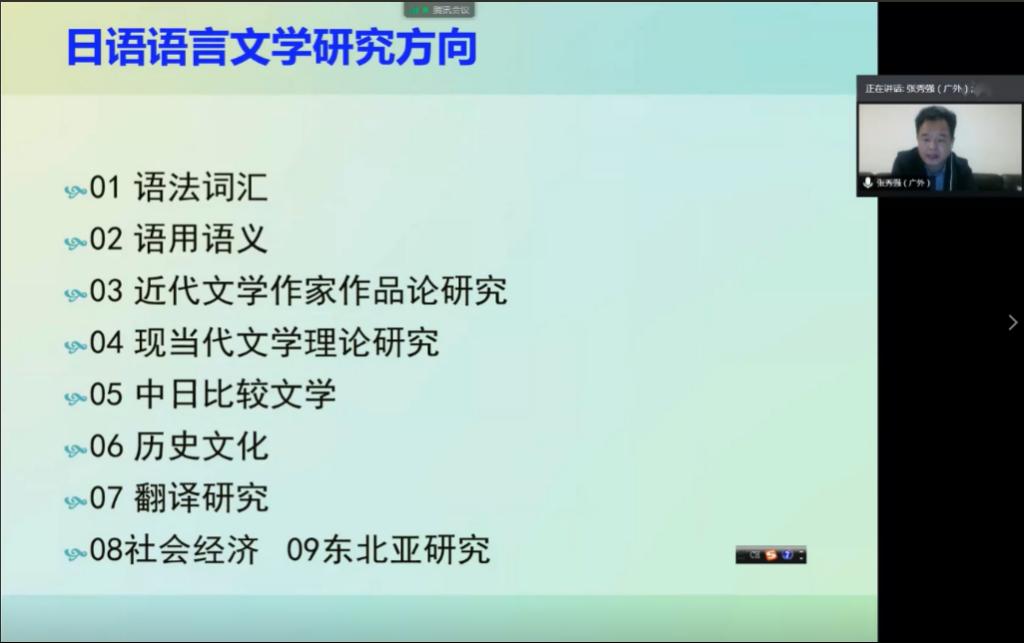 大连外国语大学日本语学院副院长王猛副院长、广州外贸外语大学日语语言文化学院张秀强教授均以腾讯会议的形式,通过网络向555电影