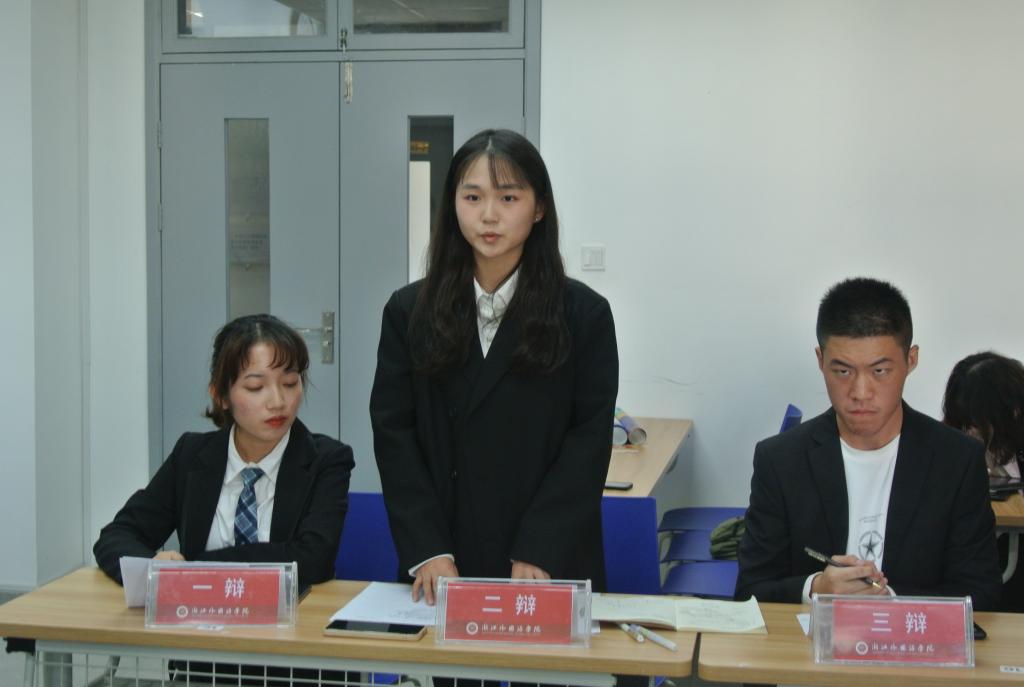 此次半决赛的评委是2019年新生辩论赛冠军及优秀辩手19日语2班孙曌珺同学、19日语2班李之涵同学、校辩论队19日语2班刘佳音同学以及555电影