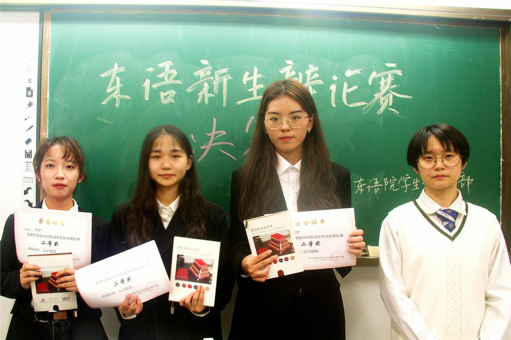 东语新一代辩手们在决赛的战场上针锋相对、互不相让。辩手们字字珠玑,在辩论场上挥洒热血。双方你来我往,最终ほおりき队击败以爱之名队,夺得本次比赛的冠军!